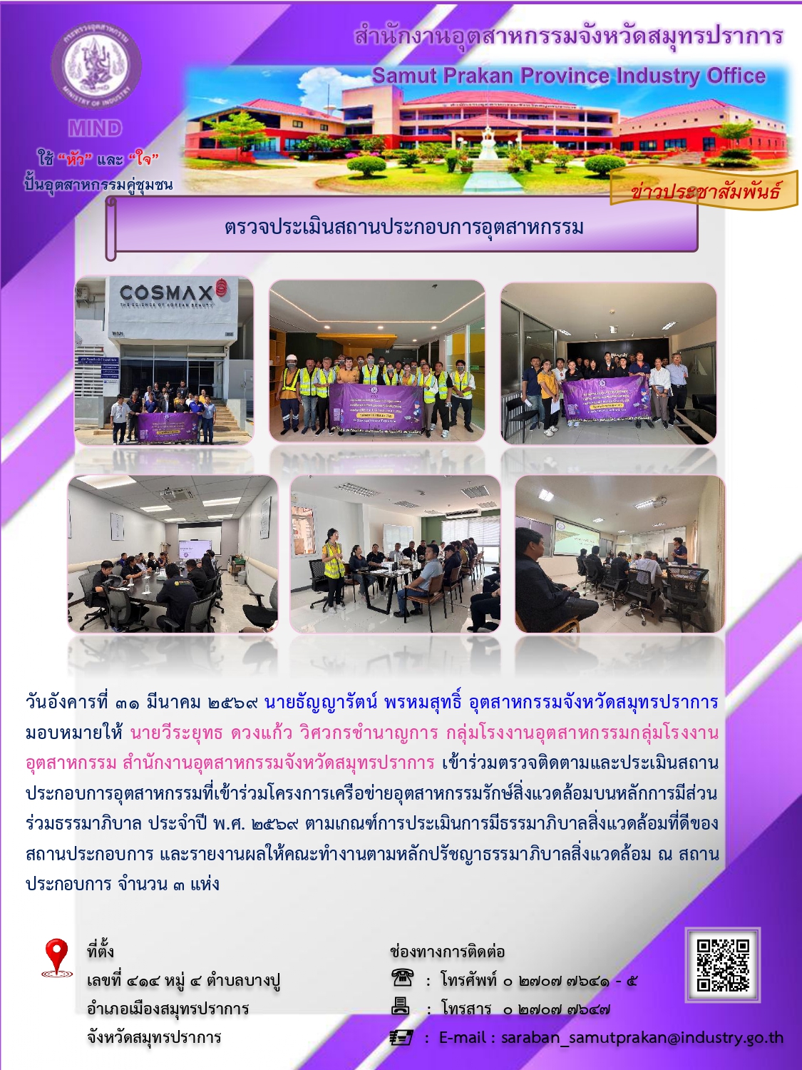 ตรวจประเมินสถานประกอบการอุตสาหกรรม