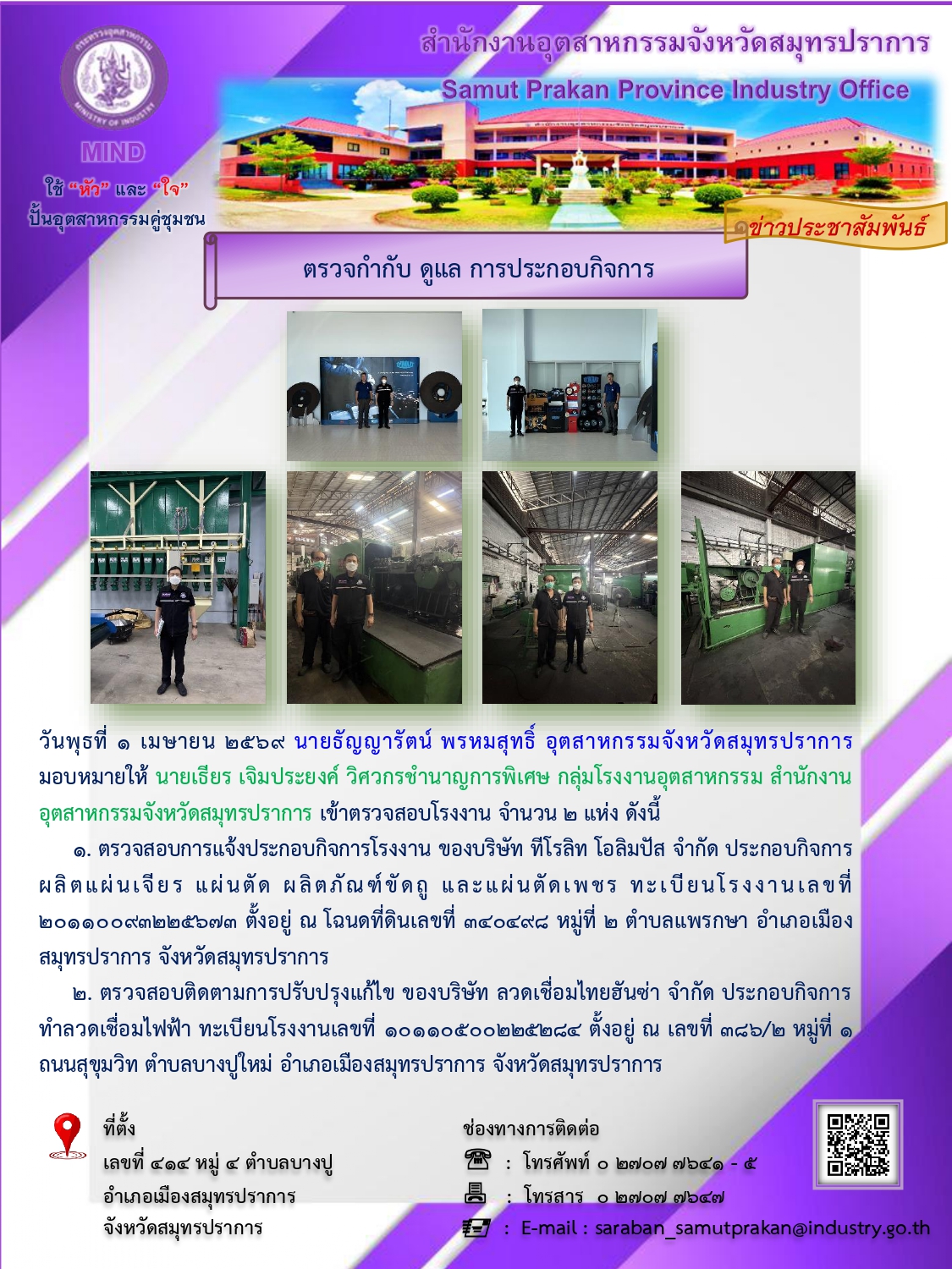 ติดต่อสำนักงานอุตสาหกรรมจังหวัดสมุทรปราการ